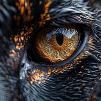 De kunstenaar heeft met uitzonderlijke vaardigheid het oog van een dier vastgelegd, waarbij elke vezel en textuur tot leven komt met ongeëvenaarde realisme. De oranje en zwarte tinten vermengen zich op harmonieuze wijze, waardoor een visueel spektakel ontstaat dat zowel intrigerend als betoverend is.