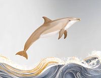 Dolfijn die met kracht en gratie uit het water springt. Dit thema roept de vrijheid, kracht en elegantie van deze walvisachtigen op. De dolfijn heeft het vrolijke vermogen om in de zee en in de lucht te bewegen en met beide elementen te spelen.