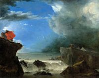In de nacht van 4 op 5 maart 1651 werd in de buurt van Amsterdam de Sint Antoniusdijk doorbroken. Jan Asselijn portretteerde het woest stromende water met een sterk gevoel voor drama. Uit de golvende mantel van de man links blijkt dat de storm nog niet voorbij is, maar de rukwinden zijn rechts al in beweging. Het levendige rood staat in schril contrast met het heldere blauw van de scheidingswolken.
