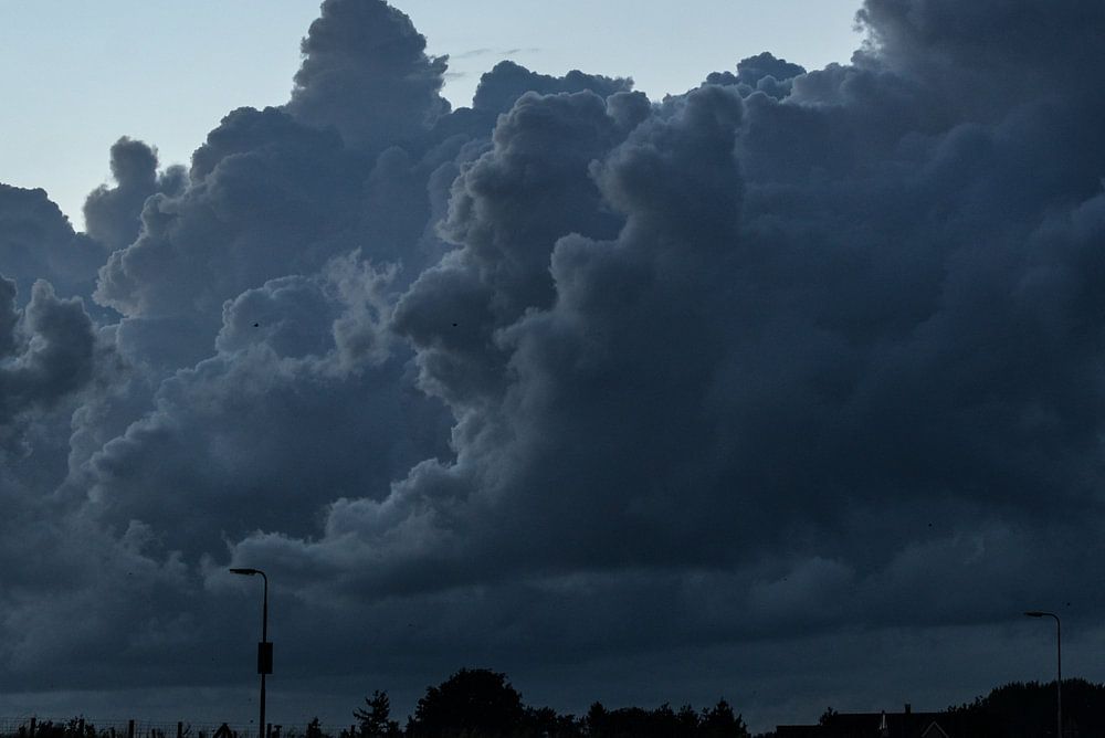 Een dreigend dik wolkendek dat in de lucht hangt.