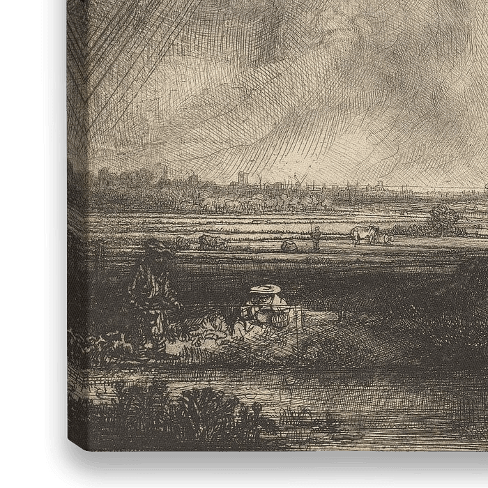 Landschapsprenten waren in de 17de eeuw enorm populair. De uitbeelding van het Hollandse landschap bereikte in het werk van Rembrandt een absoluut hoogtepunt.