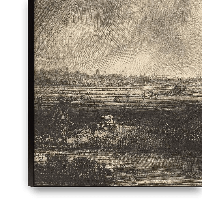 Landschapsprenten waren in de 17de eeuw enorm populair. De uitbeelding van het Hollandse landschap bereikte in het werk van Rembrandt een absoluut hoogtepunt.
