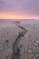 Het Groningse wad heeft prachtige kwelders. Bij het Uithuizerwad is binnendijks een vogelgebied aangelegd en aan de andere zijde van de dijk ligt een prachtig gebied welke wordt beheerd door de natuur. Eb en vloed bepaalt hier wat er gebeurt. Twee maal daags stroom het zeewater binnen en naar buiten door de diverse natuurlijk gevormde kanaaltjes. Zo ook op deze foto welke met daarom het op gedroogde slib met de karakteristieke droogtescheuren.
