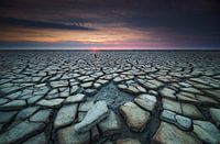 Uitgedroogde modder in de Nederlandse Wadden. Foto is genomen bij zonsondergang. Mooi om zien hoe deze structuren te voorschijn komen na weken zonder regen.