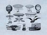 Illustratie van historische vliegmachines en heteluchtballonnen