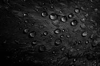 Op het verendek van een merel werken de regendruppels als vergrootglas.