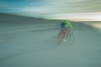Lang geleden werd het gezongen door Bouwdewijn , Een vraag die wel nooit echt beantwoord zal worden. deze in felle neon kleuren uitgedoste fietser gin geheel alleen met een razende vaart over het strand. zittende op een mountinbike door de branding van het Noordzeestrand.