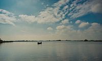 In een klein bootje gaar de zoetwater visser zijn fuiken af. haalt de vis die markt waardig is er uit en zet de rest terug in het uitgestrekte meeren gebied. Waterland kent tegenwoordig slechts een enkele brood visser. Paling is een van de belangrijke soorten die er beheert en gevangen worden. wie heel goed kijk kan aan de horizon een paar hoge gebouwen van de stad Amsterdam ontdekken. We zijn in Waterland vlakbij het dorpje Holysloot . We varen op de "Holysloter Die" een overblijfsel van wat ooit de Rijn was. de rivierdelta van de Rijn liep zeker door tot wat we nu kennen als Den Helder. Hier in waterland kijkende richting Amsterdam is de rust overweldigend , zeker waneer je er buiten het toeristen seizoen komt.