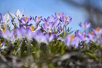 De eerste krokussen in de tuin, Sainte-Apolline, Québec, Canada