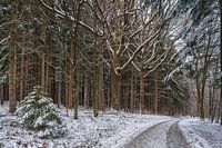 De eerste sneeuw van het jaar heeft dit bos gesuikerd