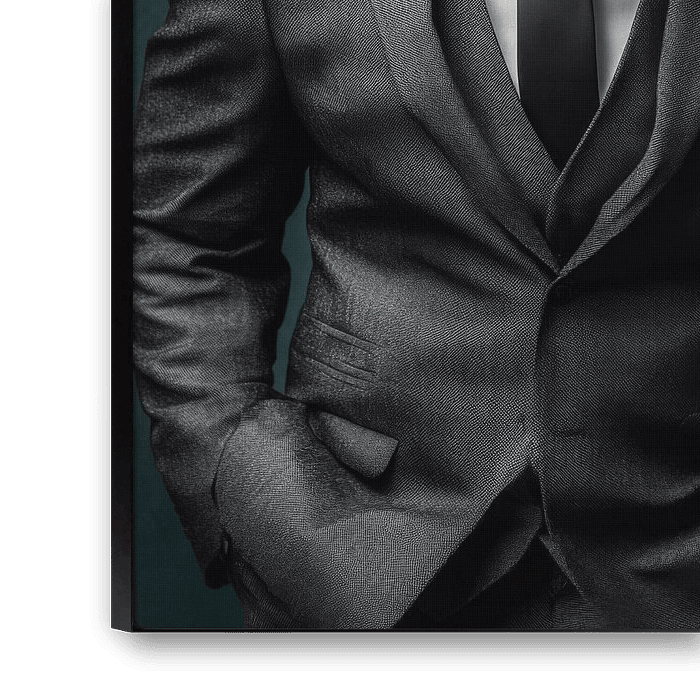 In een fascinerende combinatie van natuur en elegantie verschijnt een stijlvol geklede heer die met zijn opvallende gezichtsuitdrukking doet denken aan een machtige gorilla. Het pak zit perfect en straalt zelfvertrouwen uit, terwijl het sterke contrast tussen de menselijke verschijning en de dierlijke wreedheid een spannende symboliek ontvouwt. Een beeld dat traditie en instinct verenigt.