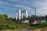 De elegante spoorbrug over het Wantij net buiten Dordrecht op een mooie heldere dag.
