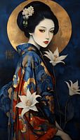 In “De Elegantie van de Lente” wordt de kijker verwelkomd in een wereld vol kleurrijke bloemen en serene schoonheid. De geisha, gekleed in een schitterende kimono met levendige patronen, straalt een gevoel van verfijning en poise uit. Haar kalme blik en elegante houding benadrukken haar verbinding met…