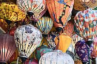 Hội An staat bekend om zijn vakmanschap en levende tradities. Deze lantaarns zijn gemaakt van fijn bewerkt bamboe en delicate zijde. Hun zachte licht verlicht de oude straten in de schemering en geeft de stad een sprookjesachtige sfeer. Overdag sieren ze winkelpuien en markten en trekken ze bezoekers aan met hun delicate charme.