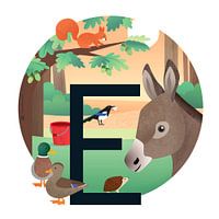 Alles met de E. Zoek zoveel mogelijk woorden met de E. Een ezel en een egel en twee eenden die elkaar enorm enig vinden. In de eik is een eekhoorn eikels aan het zoeken om te eten. Ergens zie je ook een eigenwijze ekster, een ei en een emmer.