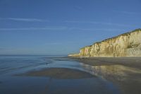 In de ondergaande zon worden de falaises (krijtrotsen) bij het dorpje Veules-les-Roses - een van de mooiste kustplaatsen in Frankrijk - prachtig verlicht.