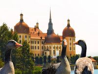 Kasteel, Saksen, Duitsland , gezicht , toerisme, reizen , dieren, vogels , gevogelte , Idyllisch , ganzen , huisdieren , geweven foto , jachthuis , barokke paleis