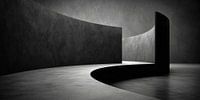 Deze foto toont geen kamer die betreden wil worden, maar een kamer die je doet stilstaan. De gebogen muur leidt het oog zachtjes maar stevig langs een lijn die duidelijk noch het begin noch het einde markeert. Architectuur wordt hier niet opgevat als een functionele constructie, maar als een bewust gestelde grens tussen beweging en…