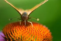 De gehakkelde aurelia is een hele mooie vlinder die in menig tuin rond zal vliegen. Op deze kleurrijke foto is de vlinder nectar aan het drinken uit de bloemknop van de Echinacea, ook wel zonnehoed genoemd.