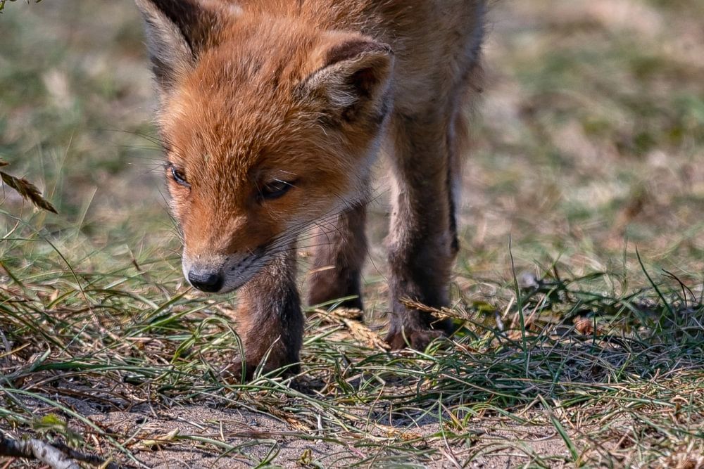 Een jong vosje op zoek naar zijn middagmaal in de Amsterdamse Waterleiding duinen.