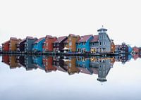 Het was grijs, maar wel windstil. Dus een prachtige weerspiegeling en een rustig beeld. De foto is genomen in januari 2022 in Groningen (Nederland)
