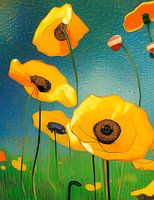 Gele klaprozen beetje abstract in de stijl van van Gogh.
