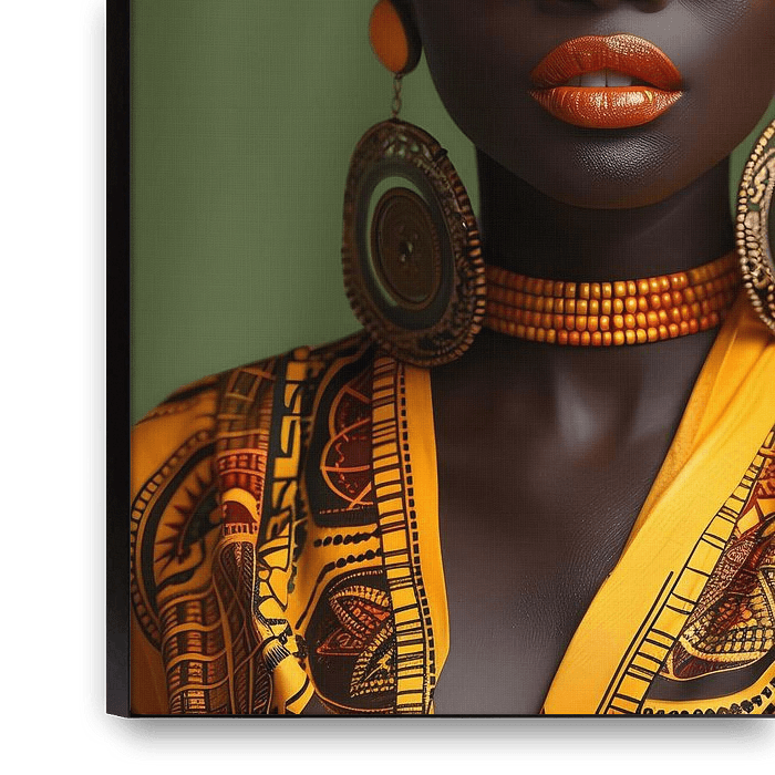 In een traditionele gele jurk staat het Afrikaanse model majestueus voor een kleurrijke achtergrond. De jurk glinstert in het licht en benadrukt de sierlijke lijnen van haar silhouet. Haar glimlach en zelfverzekerde blik geven de foto een speciale uitstraling van kracht en gratie. De zachte golven van de zijden stof lijken te dansen met…