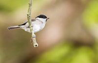 De glanskop is een vogel uit de familie mezen. Dit vogeltje is te vinden op bosrijke plekken. Deze foto kon gemaakt worden in het vroege voorjaar op de Veluwezoom. De glanskop zit in een eik, waarbij de stam in de achtergrond te zien is.