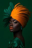 In een elegante, vloeiende jurk van groene zijde staat het Afrikaanse model majestueus voor een kleurrijke achtergrond. De jurk glinstert in het licht en benadrukt de sierlijke lijnen van haar silhouet. Haar stralende glimlach en zelfverzekerde blik geven de foto een speciale uitstraling van kracht en gratie. De zachte golven van de zijden stof lijken te dansen met de wind en weerspiegelen de levendige energie van de natuur. Omringd door weelderig groen en bloeiende planten belichaamt ze de harmonieuze combinatie van mode en de schoonheid van haar Afrikaanse roots. Dit beeld vangt niet alleen de elegantie van de jurk, maar ook de tijdloze schoonheid en trots van de Afrikaanse cultuur.