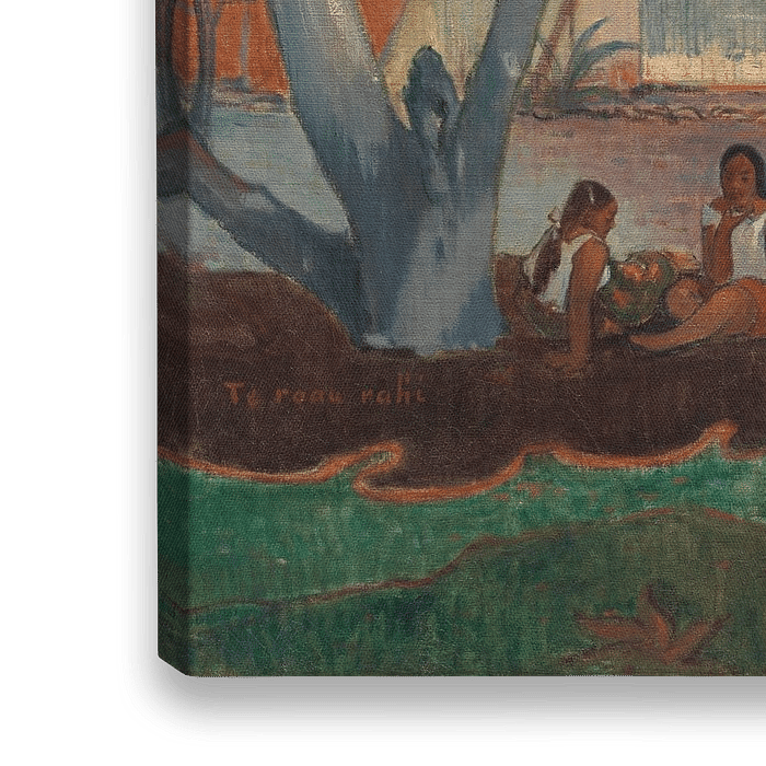 Uit afschuw over het materialisme van de Europese samenleving liet Gauguin zijn familie en carrière als effectenmakelaar in de steek en vertrok in 1891 naar Tahiti. Dit doek behoort tot de eerste schilderijen die hij op het eiland maakte. De rijke kleuren en gestileerde figuren waren bedoeld om zowel symbolisch als mysterieus te zijn en om privé-gedachten en emoties op te roepen. "Ik krijg symfonieën," schreef hij, "harmonieën die niets echt voorstellen in de absolute zin van het woord."