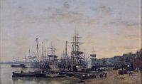 Koop dit moderne kunstwerk De haven van Bordeaux, gezien vanaf de Quai des Chartrons, Eugène Boudin, 1875 van Atelier Liesjes op canvas, aluminium dibond, (ingelijste) fotoprint, behang en ArtFrame, op maat geprint in Fine-Art kwaliteit.
