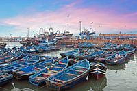 De haven van Essaouira in Marokko bij zonsondergang in Afrika