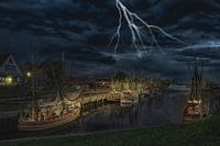 Greetsiel haven in de avond tijdens een onweersbui - Photoshop compositie