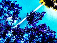 digitale manipulatie met blauw als hoofdthema met een toefje geel, past goed in een strak interieur of kantoor.