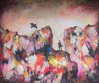De herder op de rotsen en de vogel - landschap- Acryl op doek - Hans Sturris
