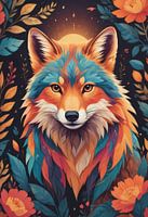 Een majestueuze vos kijkt de kijker recht aan met zijn vacht als een levendig tapijt van herfsttinten. Wintertaling, oranje en rood mengen zich naadloos en bootsen de kleuren van vallende bladeren na. De vos wordt omlijst door een weelderige achtergrond van bloemen en gebladerte, waardoor het herfstthema nog meer wordt benadrukt. Een…
