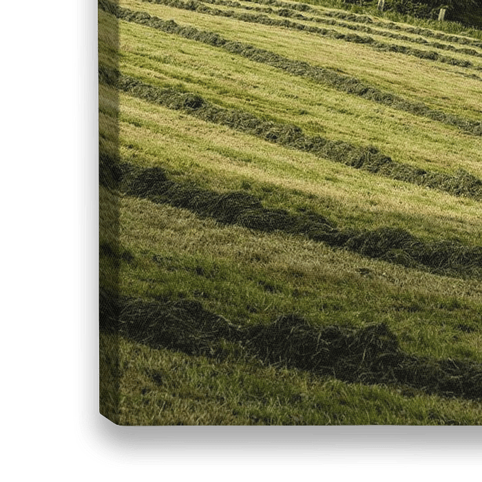 Mooi lente panorama in de heuveltjens van het Pajottenland (nabij Pollare). Het gras is net gemaaid en geeft mooie lijnen.