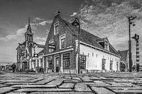 Koop de foto De historische kern van het Friese stadje Makkum in zwartwit van Harrie Muis op canvas, aluminium dibond, (ingelijste) fotoprint, behang en ArtFrame, op maat geprint in Fine-Art kwaliteit.