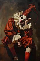 Een fascinerend olieverfschilderij van een hofnar in de stijl van Caravaggio, die de dramatische belichting en realistische weergave van de meester perfect weergeeft. De hofnar staat centraal op het schilderij, met expressieve gezichtsuitdrukkingen en een theatrale pose die zijn carnavaleske figuur benadrukt. De donkere schaduwen en…