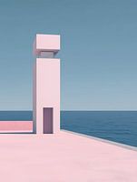 Dit kunstwerk toont een architectonisch gebouw in de vorm van de letter "i", geïnspireerd op het woord "Imagination". Het ontwerp is modern en speels, met zachte pastelkleuren zoals zacht roze en zacht blauw die harmonieus in elkaar overlopen. De "i" wordt bekroond door een subtiel gloeiende stip, die symbool staat voor creativiteit en inspiratie. Het werk combineert fantasie en realiteit, en nodigt de kijker uit om de grenzen van hun verbeelding te verkennen.