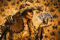 De centrale vrouwfiguur lijkt de beslissende kaarten in de hand te hebben.
