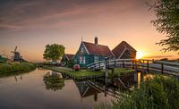 Erg vroeg in de ochtend, de zon is net opgekomen, dan zijn er nog geen touristen in de Zaanse Schans.