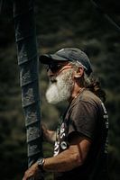 De zon brandt zacht op zijn huid terwijl hij, met vaste hand en kalme blik, het dek overziet. Zijn zilvergrijze baard vangt het licht en weerspiegelt de wijsheid van vele jaren op zee. De pet, het verweerde T-shirt en de donkere zonnebril vertellen een verhaal van iemand die thuis is op het water.