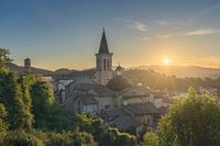 Spoleto, Santa Maria Assunta, of Sint Maria Duomo kathedraal bij zonsondergang. Provincie Perugia, regio Umbrië, Italië, Europa.