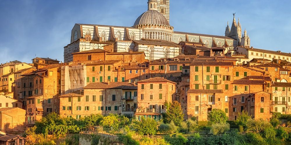 Stadsaanzicht / skyline van de stad Siena in Toscane Italië. U kunt de prachtige oude stad Siena zien met de kathedraal van Siena, de Duomo Santa Maria Assunta.