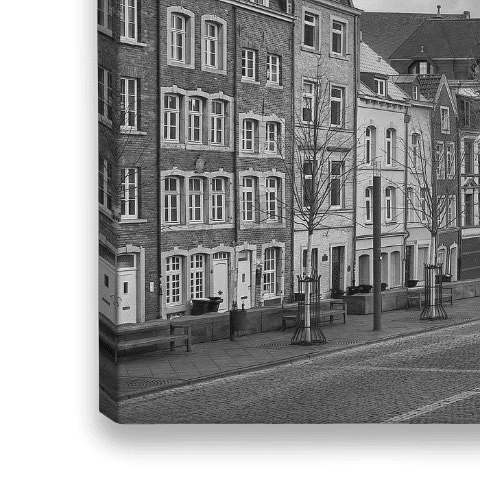 Ervaar de tijdloze elegantie van de kathedraal van Aken met deze indrukwekkende zwart-witfoto. Dit kunstwerk, genomen vanaf de binnenplaats van Katschhof, toont de majestueuze kathedraal in de fijnste grijstinten en legt de indrukwekkende architectuur en historische sfeer van de locatie in rijk detail vast.