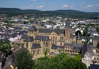 De Dom van Trier is de oudste bisschopskerk en de Liebfrauenkirche is een van de oudste gotische kerken van Duitsland. Al onder de Romeinse keizer Constantijn werd op deze plaats een dubbele kerk gebouwd. De foto is genomen vanaf een mobiele uitkijktoren van ongeveer 70 m hoog.