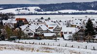 Het dorp Herleshausen in de winter met uitzicht op de kikkerdril