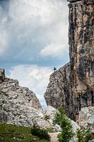 Landschapsfoto van de Dolomieten in Italië van de pieken van Cinque Torri met daarop een ogenschijnlijk klein boompje