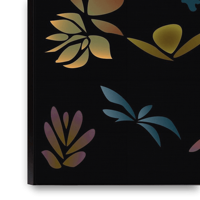 Jouw gekozen kunst op doek, gespannen in een aluminium frame. Snel en eenvoudig te verwisselen voor een frisse uitstraling en helemaal zoals jij het wilt.